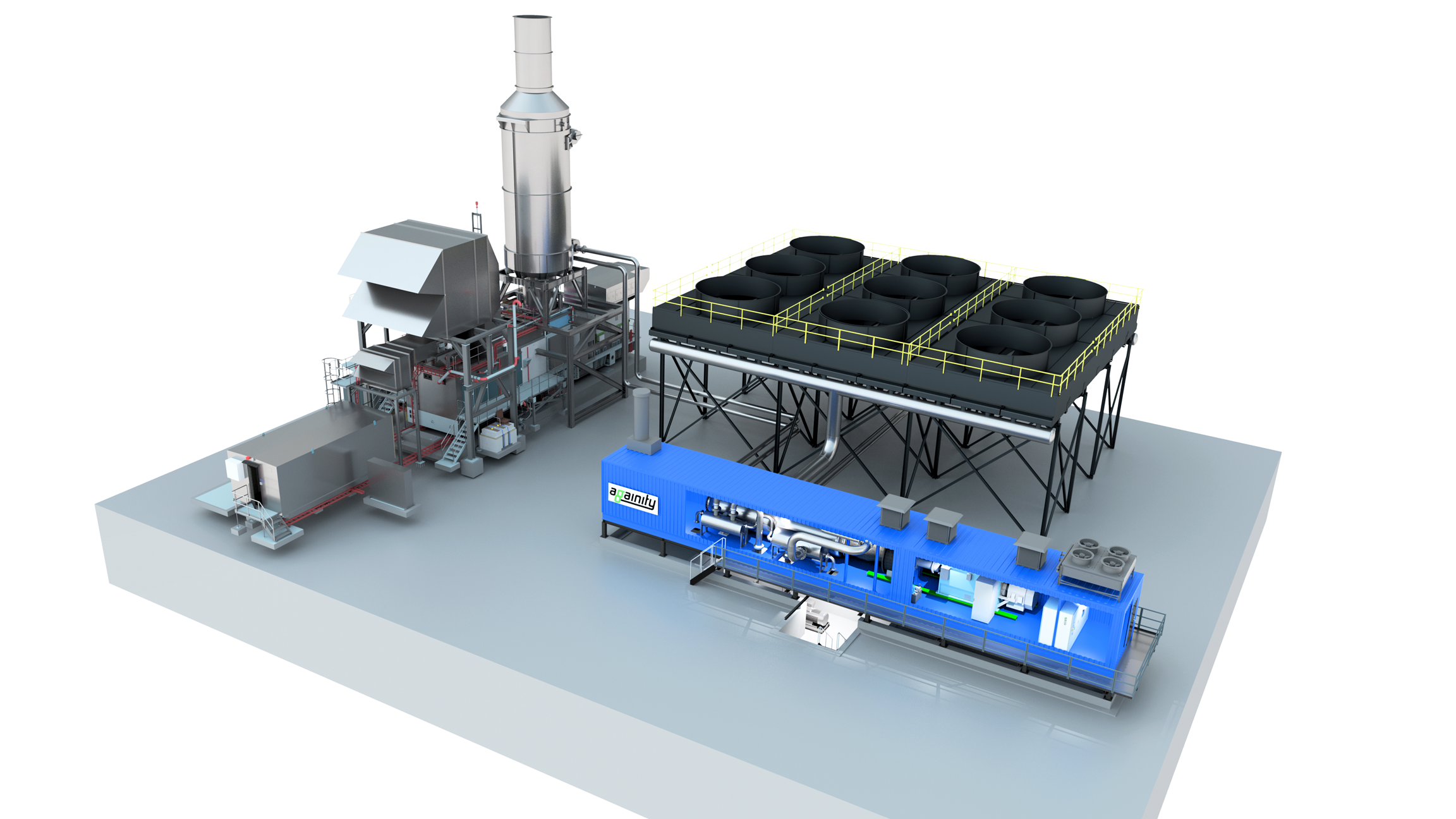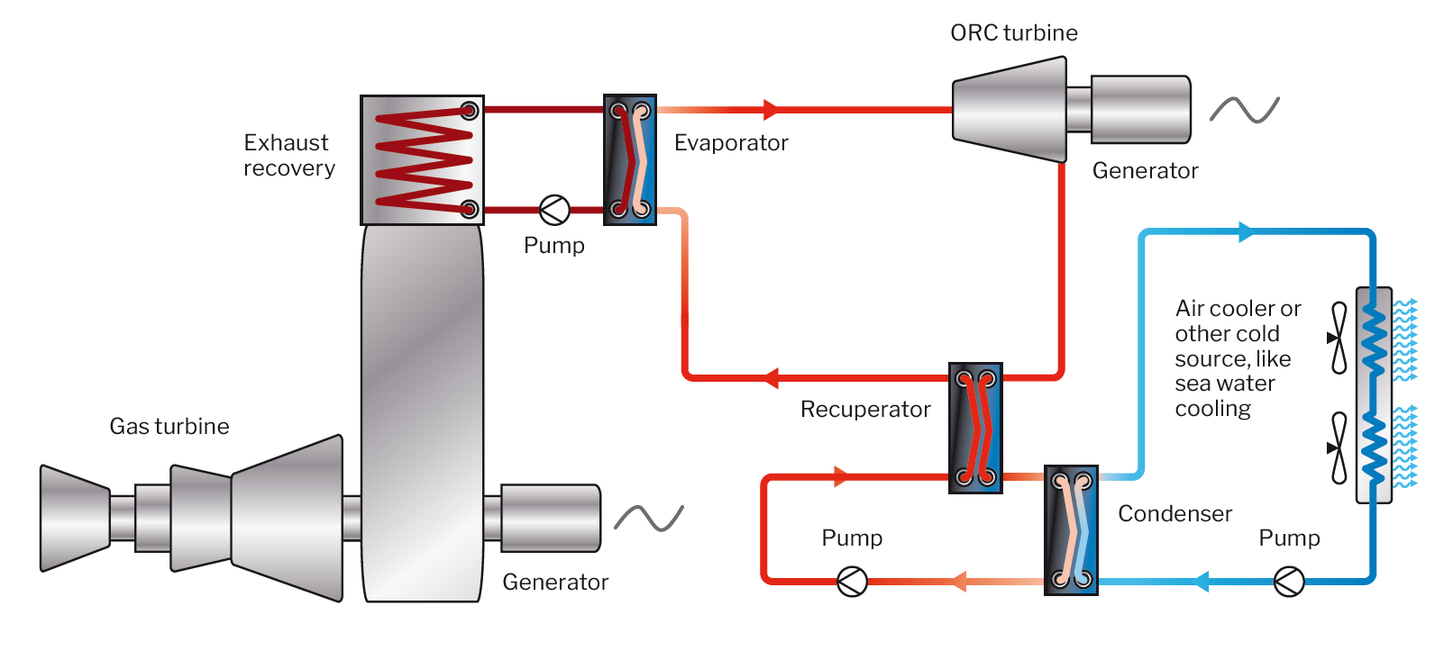 Två gasturbiner där värme från rökgaserna ansluts till Againitys ORC-turbin.