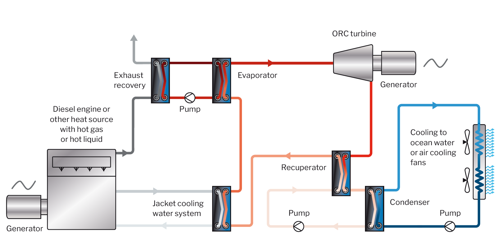 Flödesschema för ett ORC-system i krets med dieselgenerator